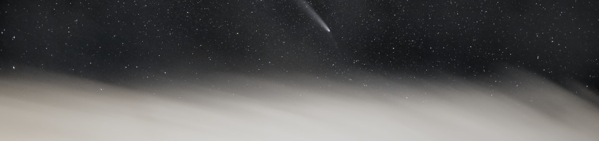 Im vorherigen Bild ist der Komet in der großen Übersicht ganz leicht rechts über den Wolken zu sehen.